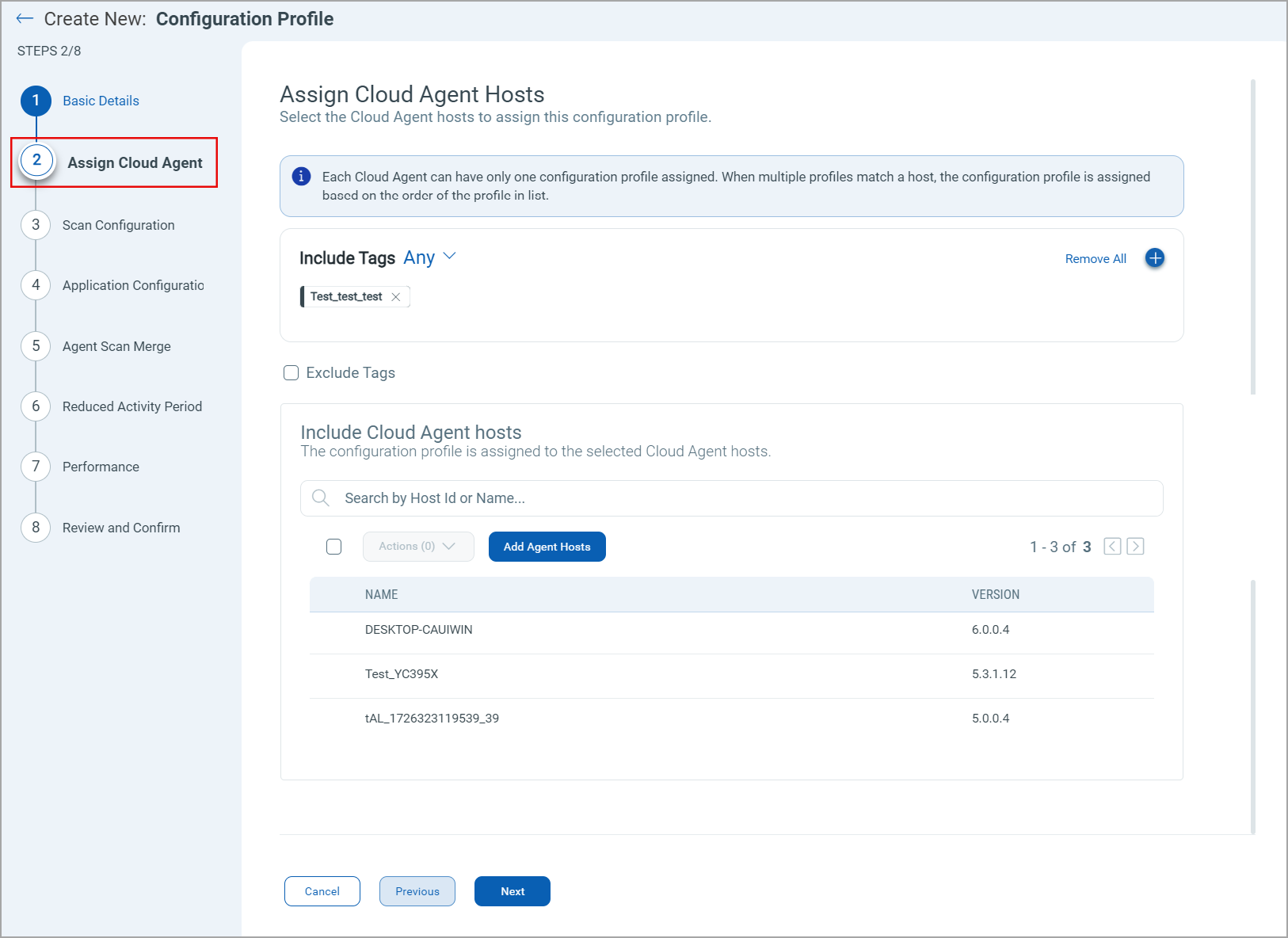 The Cloud Agent tags help in grouping and managing the Cloud Agent in better ways. Select this option to assign your configuration profile to Cloud Agents with specific tags. Click