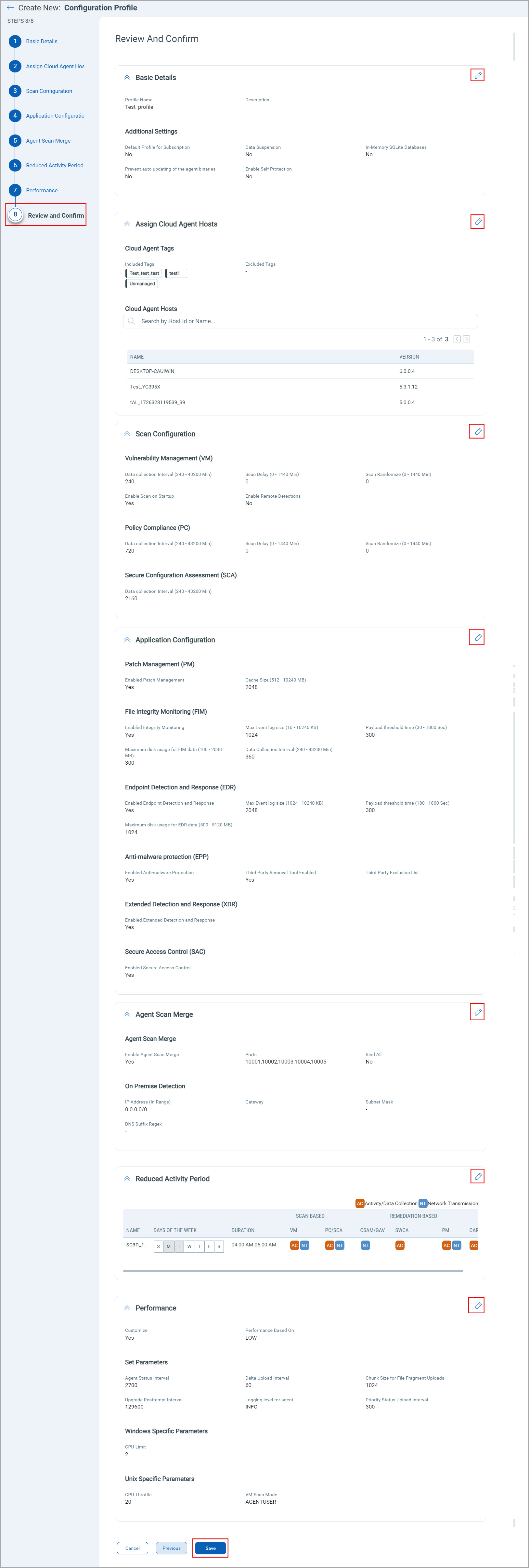 Once the new configuration profile is saved, the profile is available in the configuration profile list.