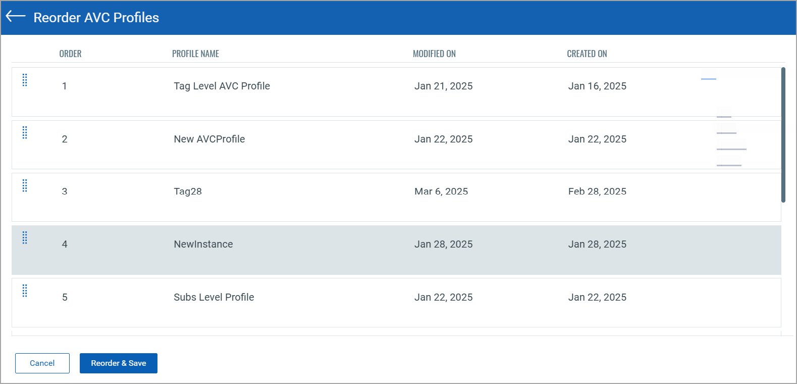 The following are the steps to reorder AVC profiles: