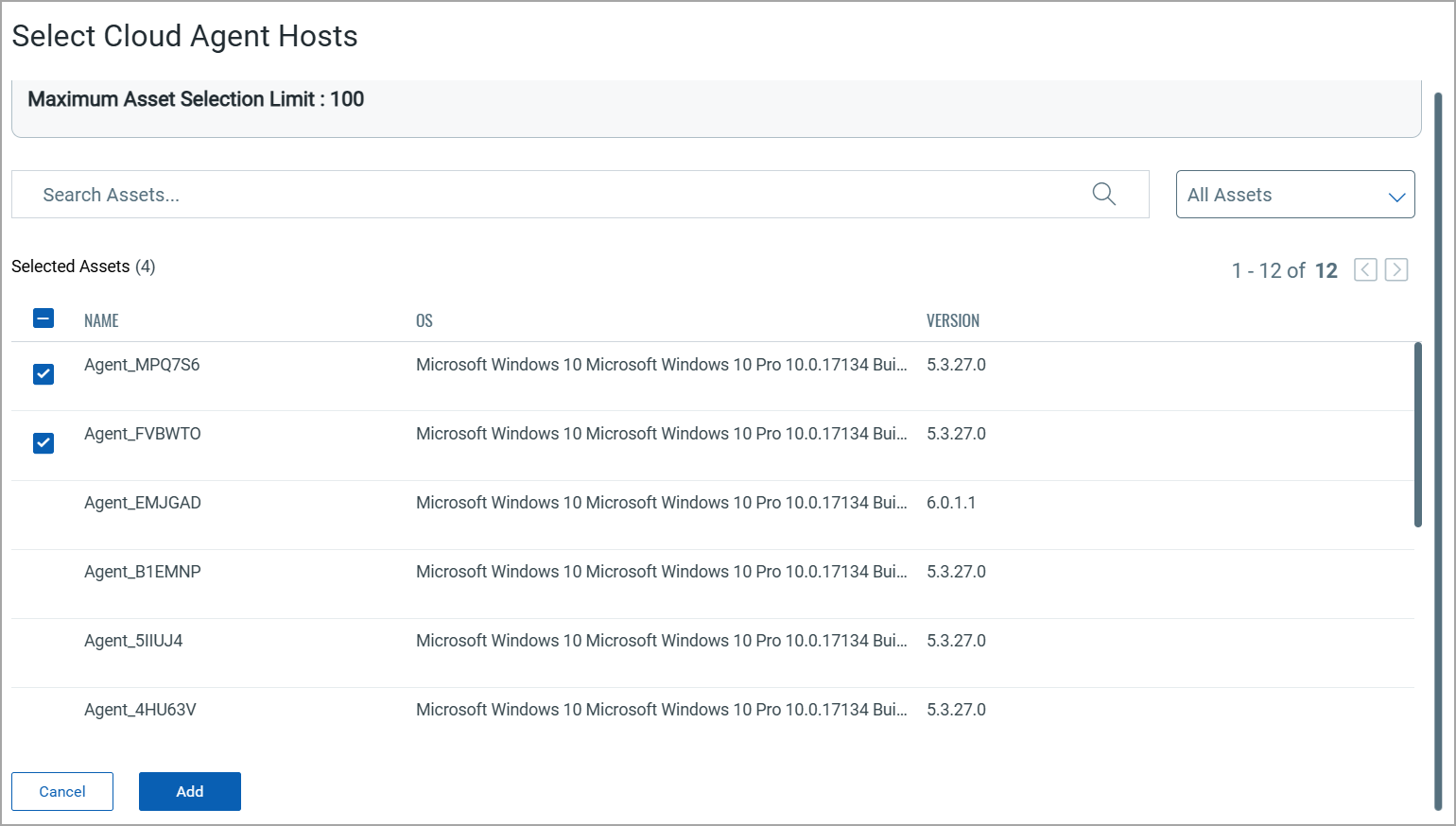 in the CAPS Leader Assignment section to select the Cloud Agent host to act as a CAPS leader. You can select up to a hundred host assets to act as a CAPS leader. When you assign multiple Cloud Agent hosts as CAPS leaders, the designated CAPS leader candidates randomly elect a leader among them.