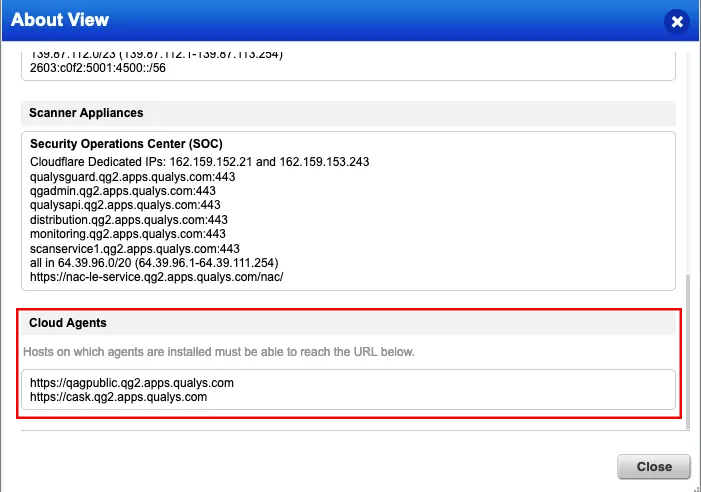 To view the CDN Server URLs specific to your host, navigate to Help > About section in the Cloud Agent user interface.