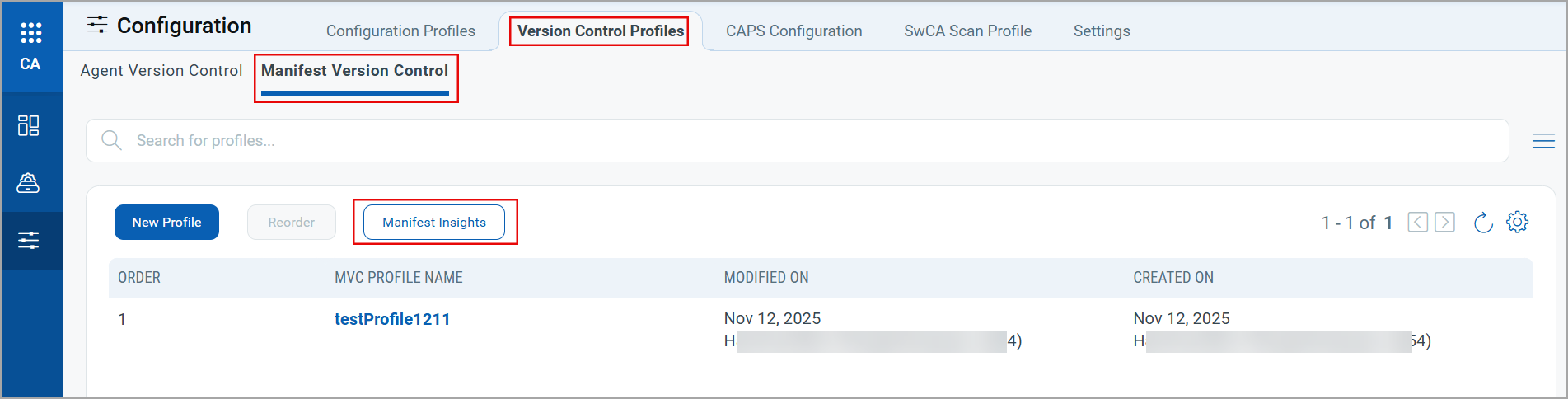 We have also updated the Manifest Versions option to Manifest Insights. The manifest insights display the manifest version details, including versions, delta, QID, and change log.