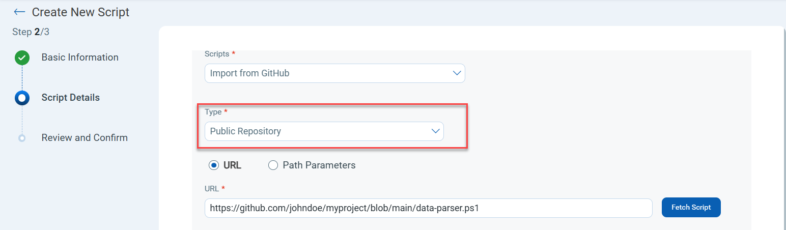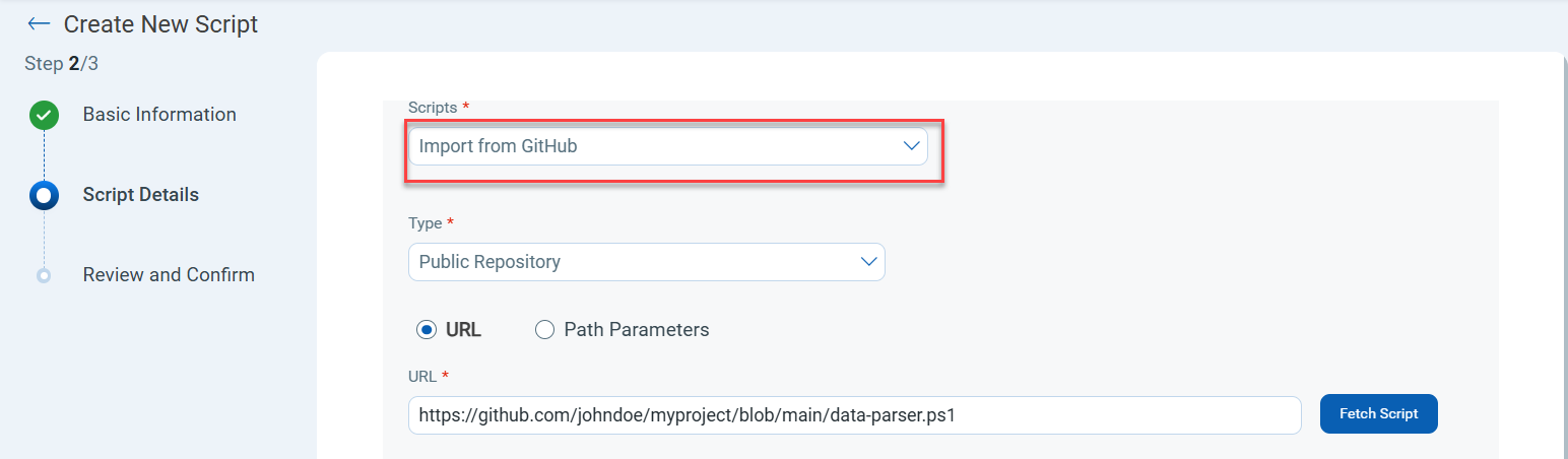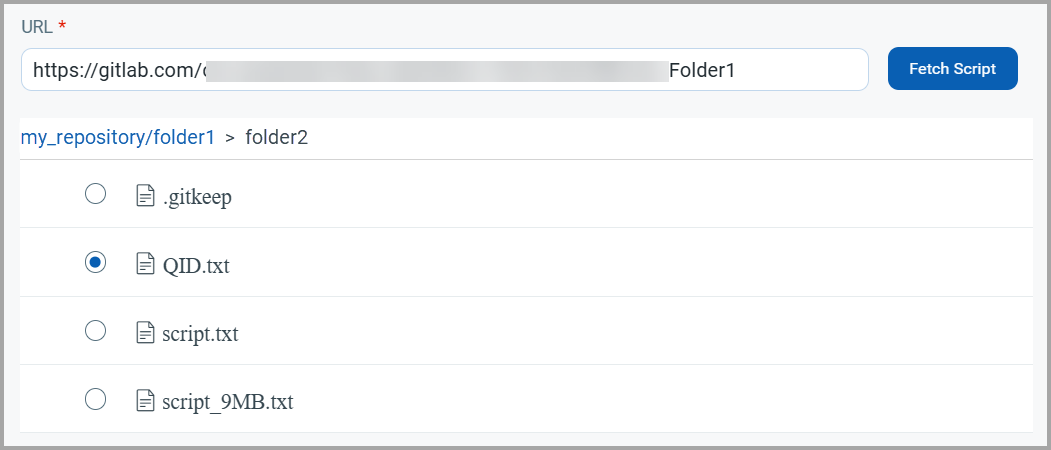 If your provided URL contains a folder with many scripts, you can navigate and select the script you want.