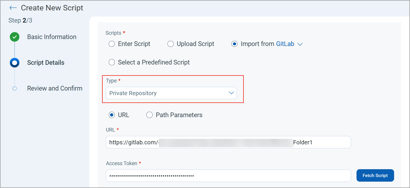 - On Demand: Select if you want to manually sync the script with GitLab.