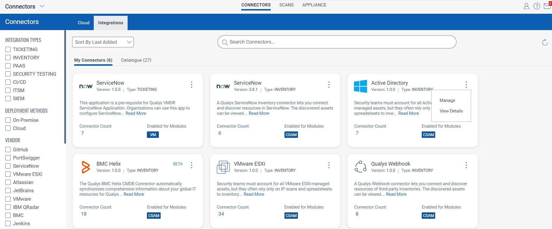 Modules to Enable - Select the Qualys service the connector will have access to. Select CSAM to pass the Connector information to the CSAM application.
