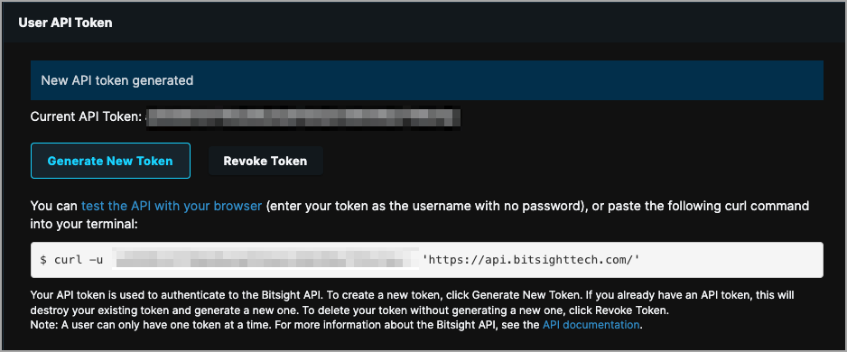 You must generate a Bitsight token to authenticate yourself. To create a user token, perform the following.