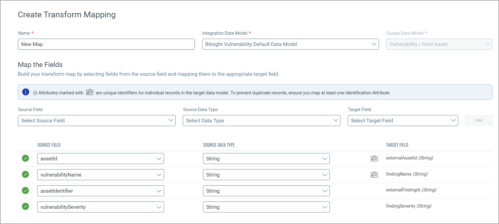Map the fields from Bitsight to the corresponding fields in your target system. Transform Maps ensure the data is transformed correctly during the import or export process.