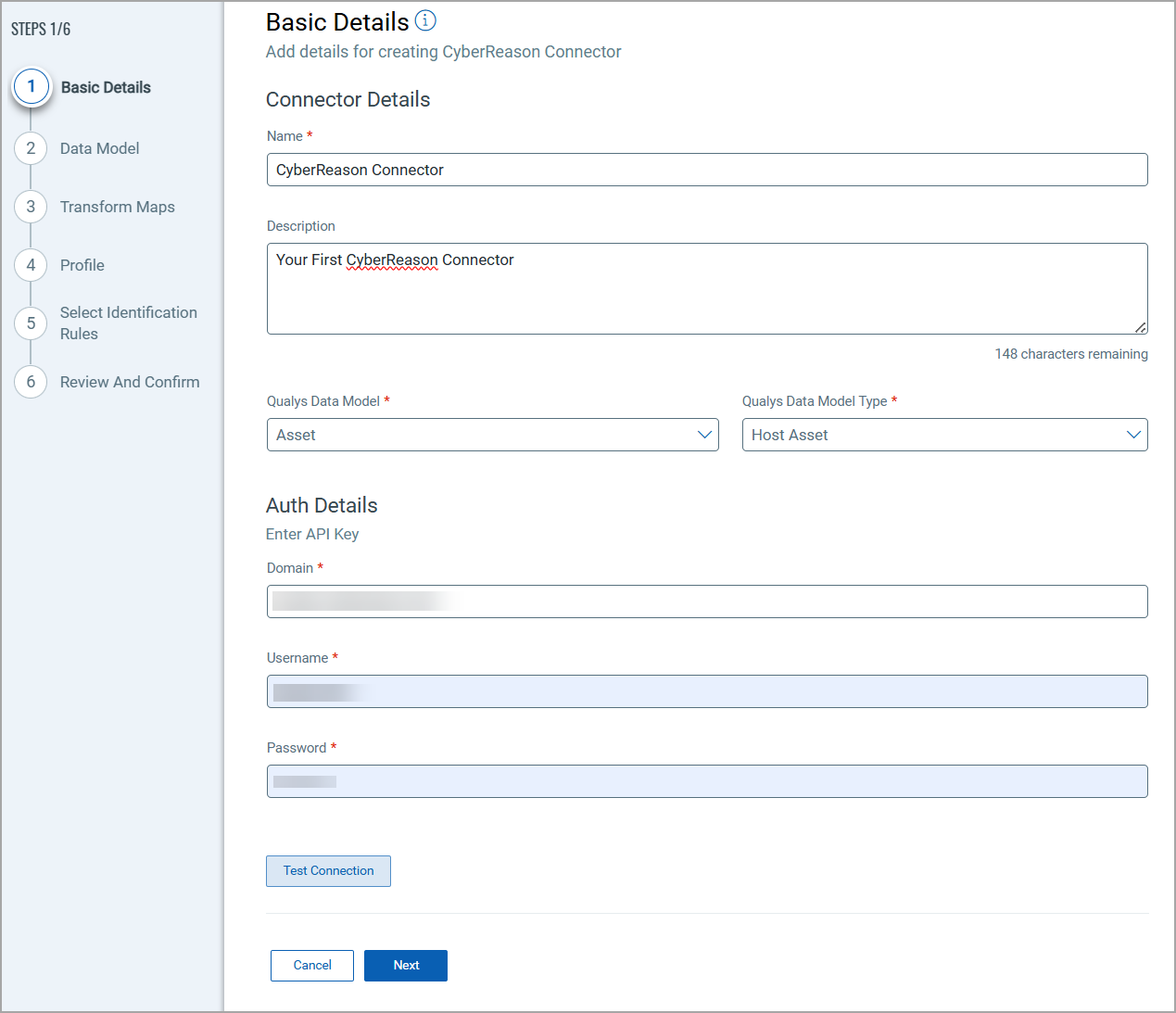 A Connection usually involves creating a profile that defines which vulnerabilities to import based on detection data types and asset types. The connector then automatically executes according to the schedule (or on-demand), pulling asset data from CyberReason into Qualys ETM where it can be viewed alongside other security findings.