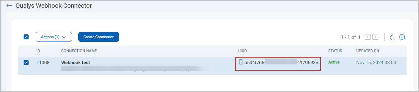 - Once the connector is created, Qualys automatically generates a Connector UUID.
