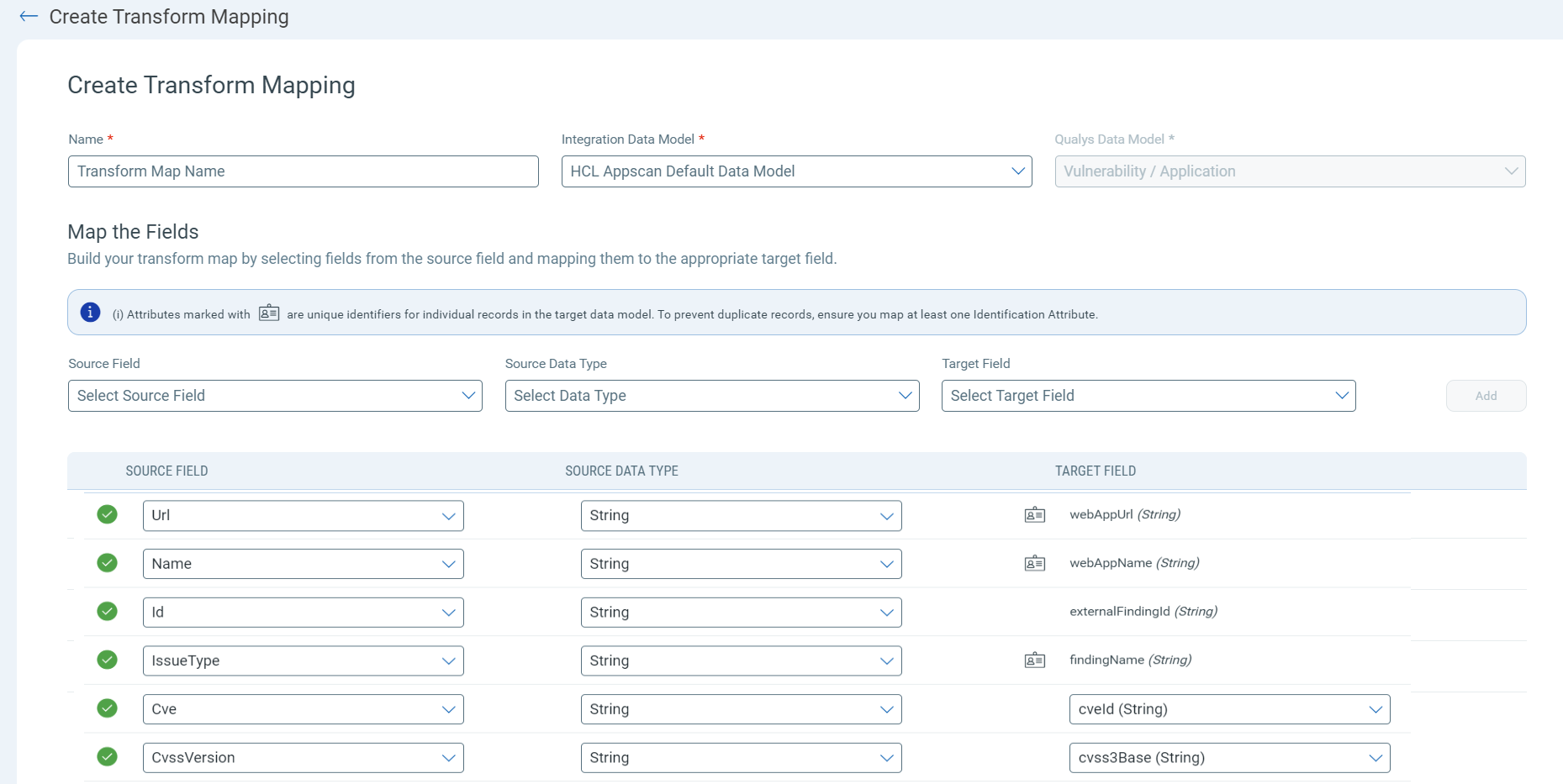 The Qualys Connector for HCL offers an out-of-box data model mapping for you to map with the Qualys ETM schema. You can view the schema to understand the attributes in the data model.
