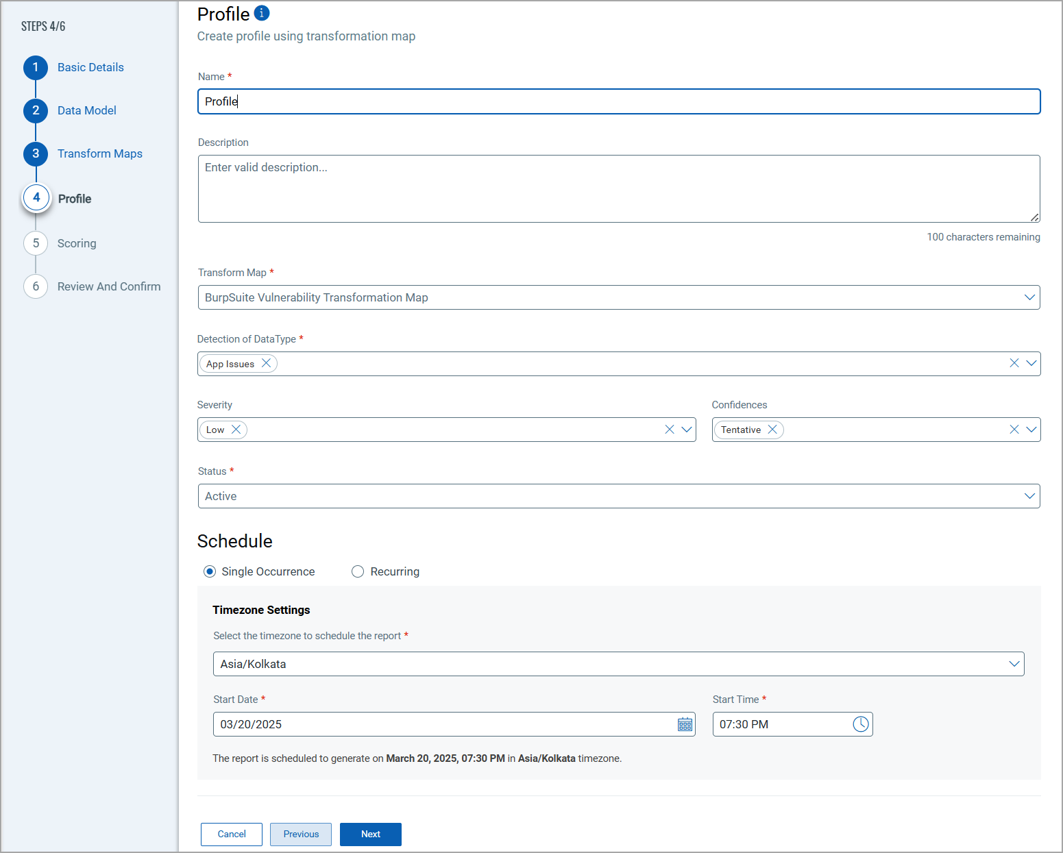 The Confidence dropdown determine the confidence level (Firm, Tentative, and False Positive) of the findings to select for the profile. You can select multiple options from this field.