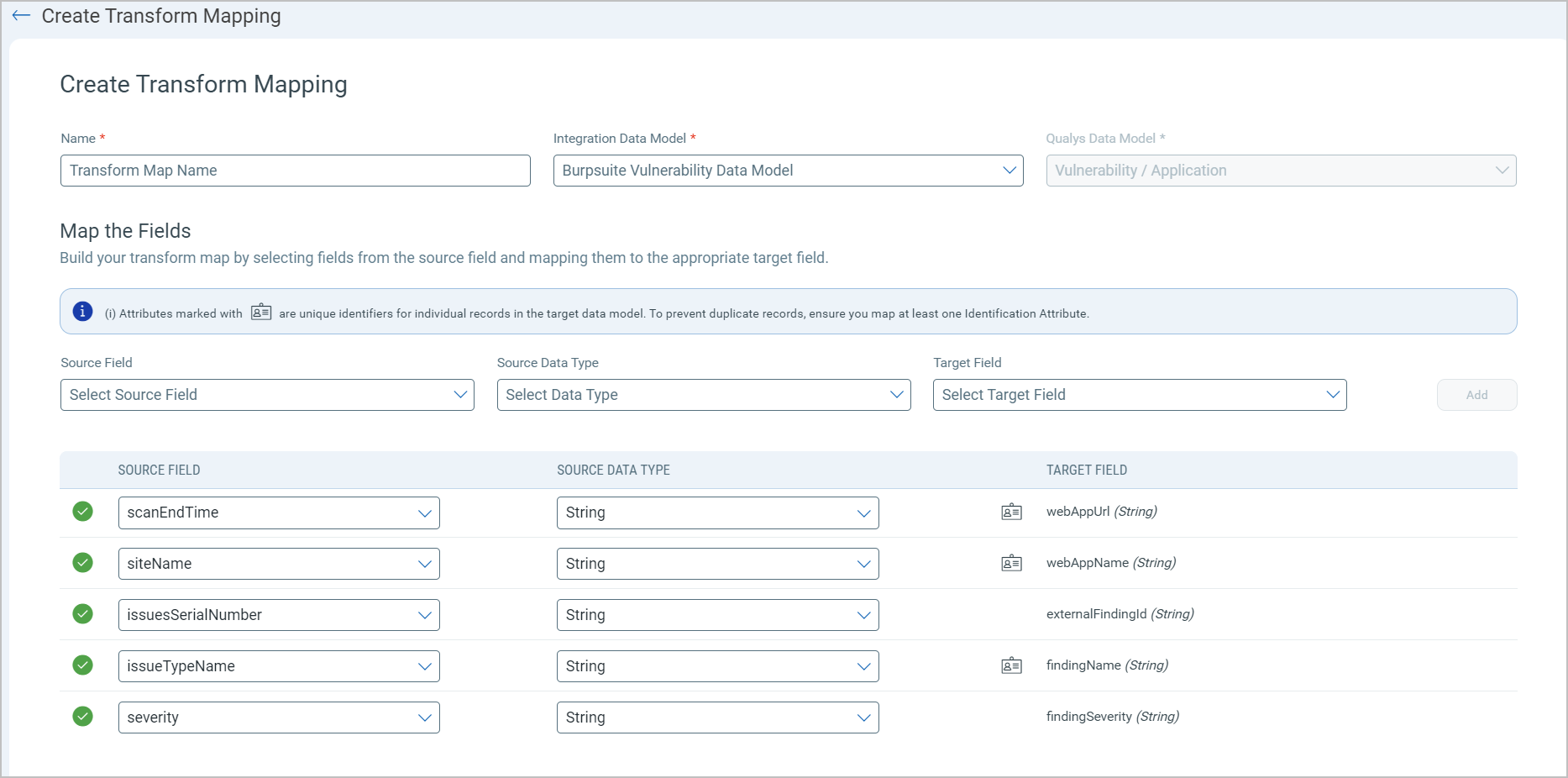 The PortSwigger BurpSuite Connector offers an out-of-box transform map for you to proceed without further configuration. View the map to understand the data transformation or clone the map to edit its configurations.