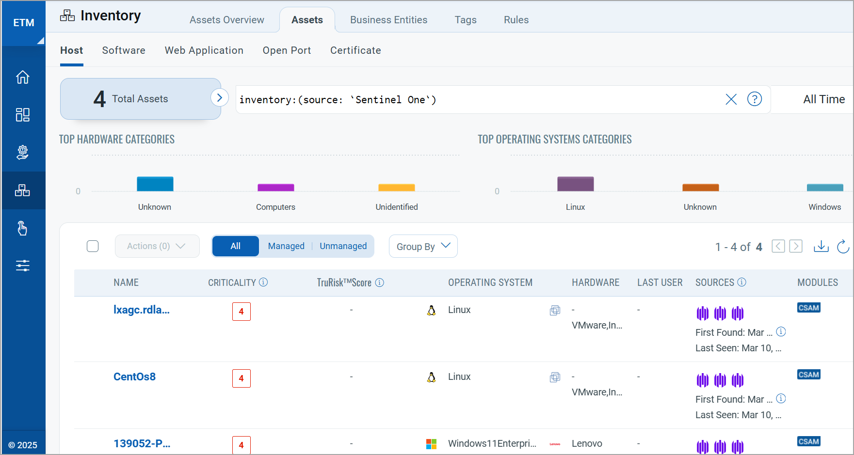 inventory: (source: SentinelOne)to view assets imported from SentinelOne