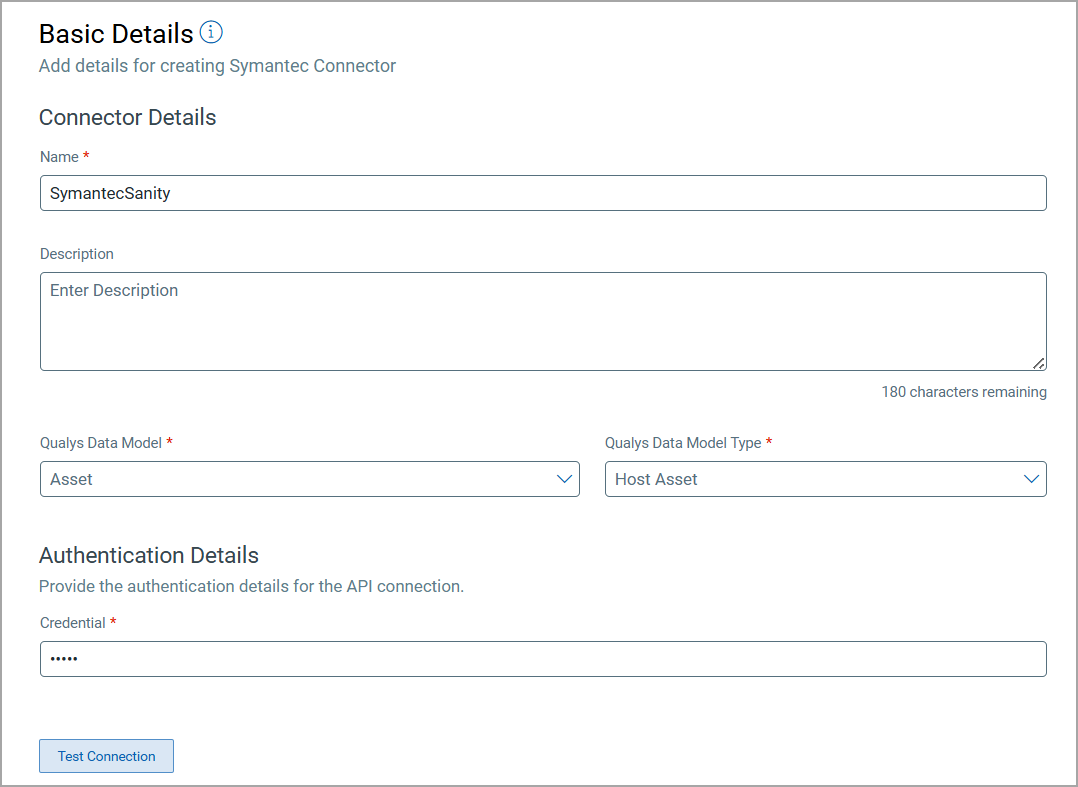 These are the required configurations to create a Symantec Broadcom connection with Qualys ETM successfully.
