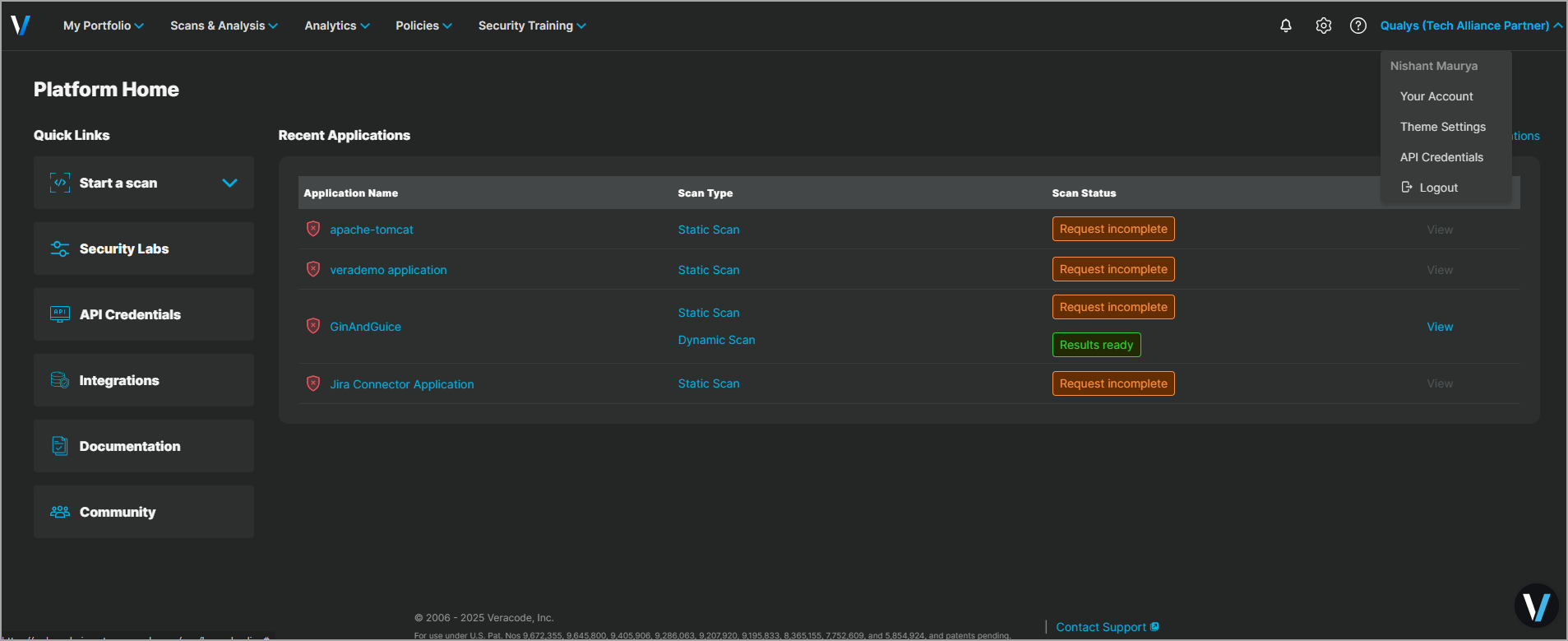 The Veracode Connector is available on demand. To activate it for your subscription, please contact your Technical Account Manager (TAM) or Qualys Support.