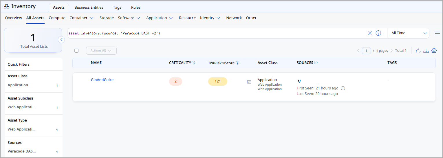 Go to Assets to view imported Veracode assets/applications - Assets > Application > Code Repository