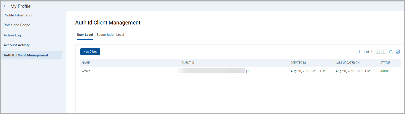 - Client New Client on the Auth ID Client Management page.