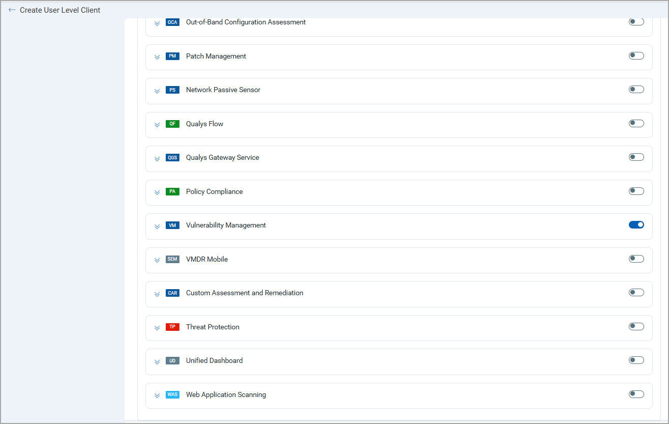 - Select Vulnerability Management by clicking on the toggle button.