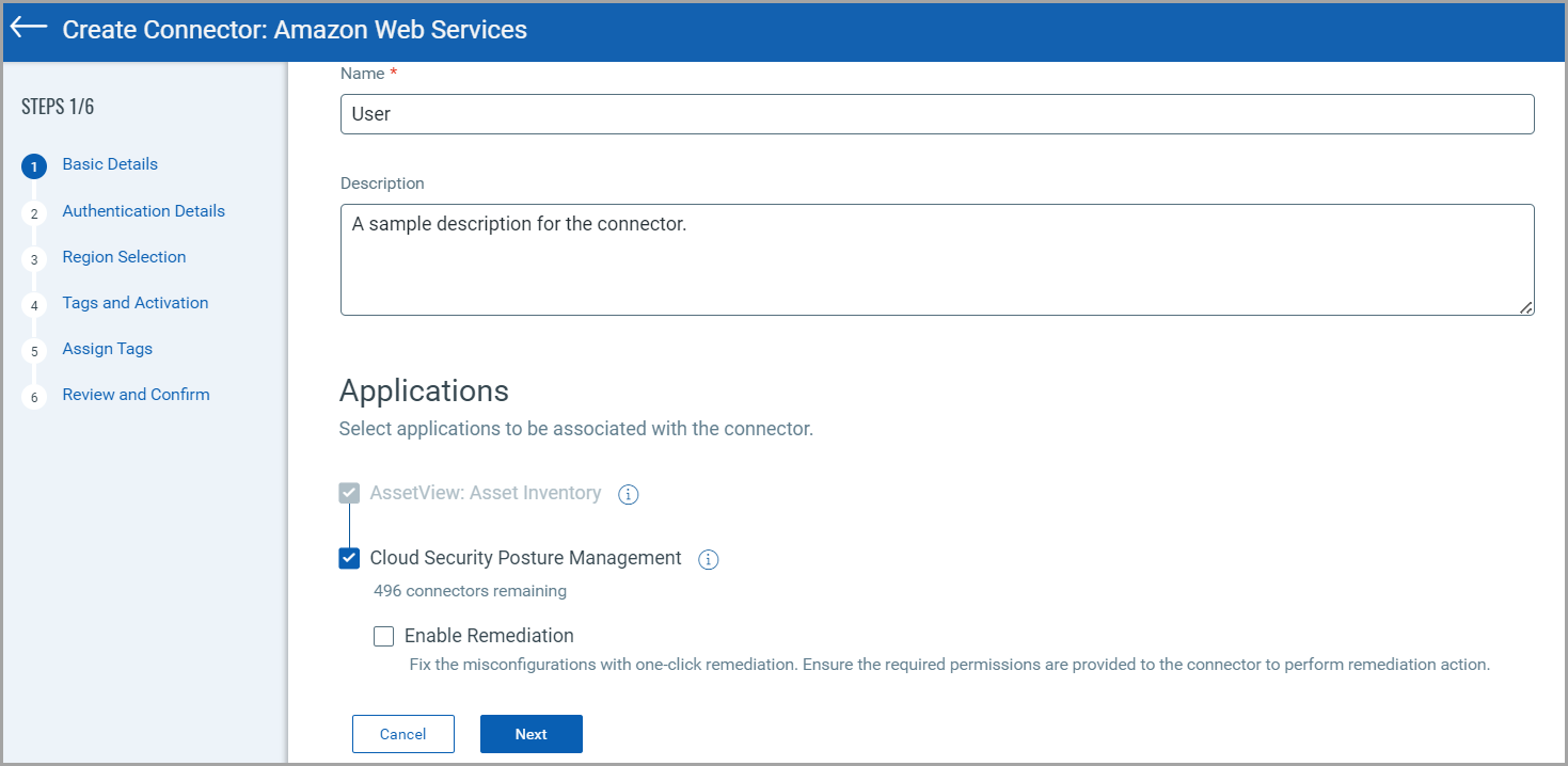 - AssetView: Asset Inventory - The connector fetches cloud resource data and populates your Asset Inventory on CSAM. This is active by default for all connectors. This cannot be disabled.