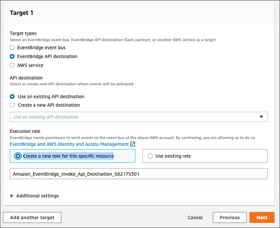 - Select API destination as 'Use an existing API destination' (Select the API destination which was created as part of the API Destination).