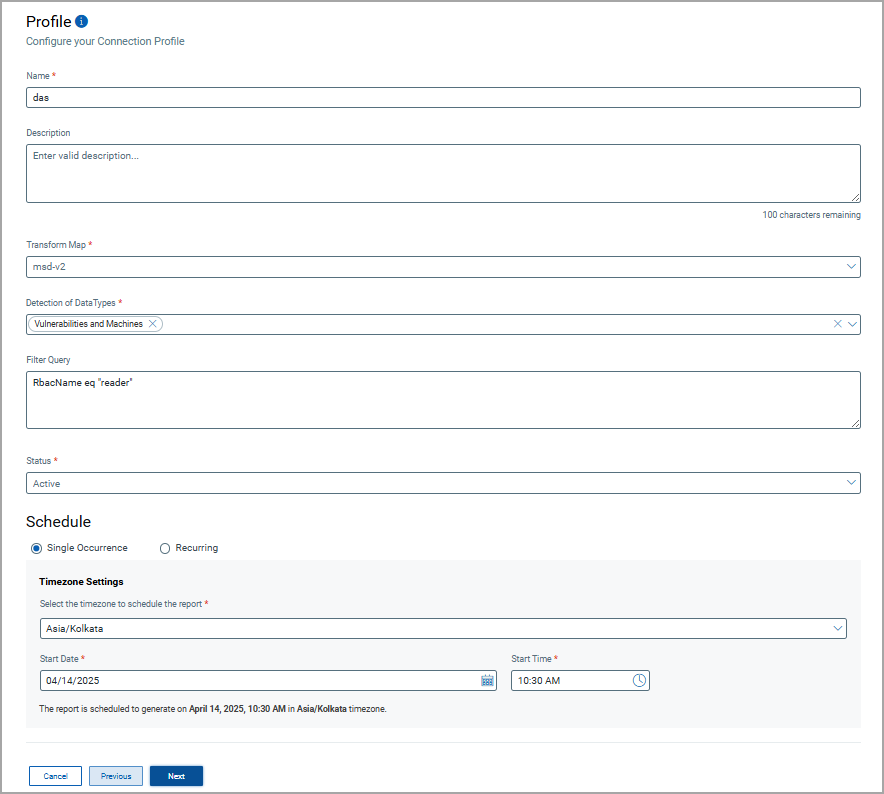 A Connection usually involves creating a profile that defines which vulnerabilities to import based on detection data types and asset types. The connector then automatically executes according to the schedule (or on-demand), pulling vulnerability data from Microsoft Defender for Enpoint into Qualys ETM where it can be viewed alongside other security findings.