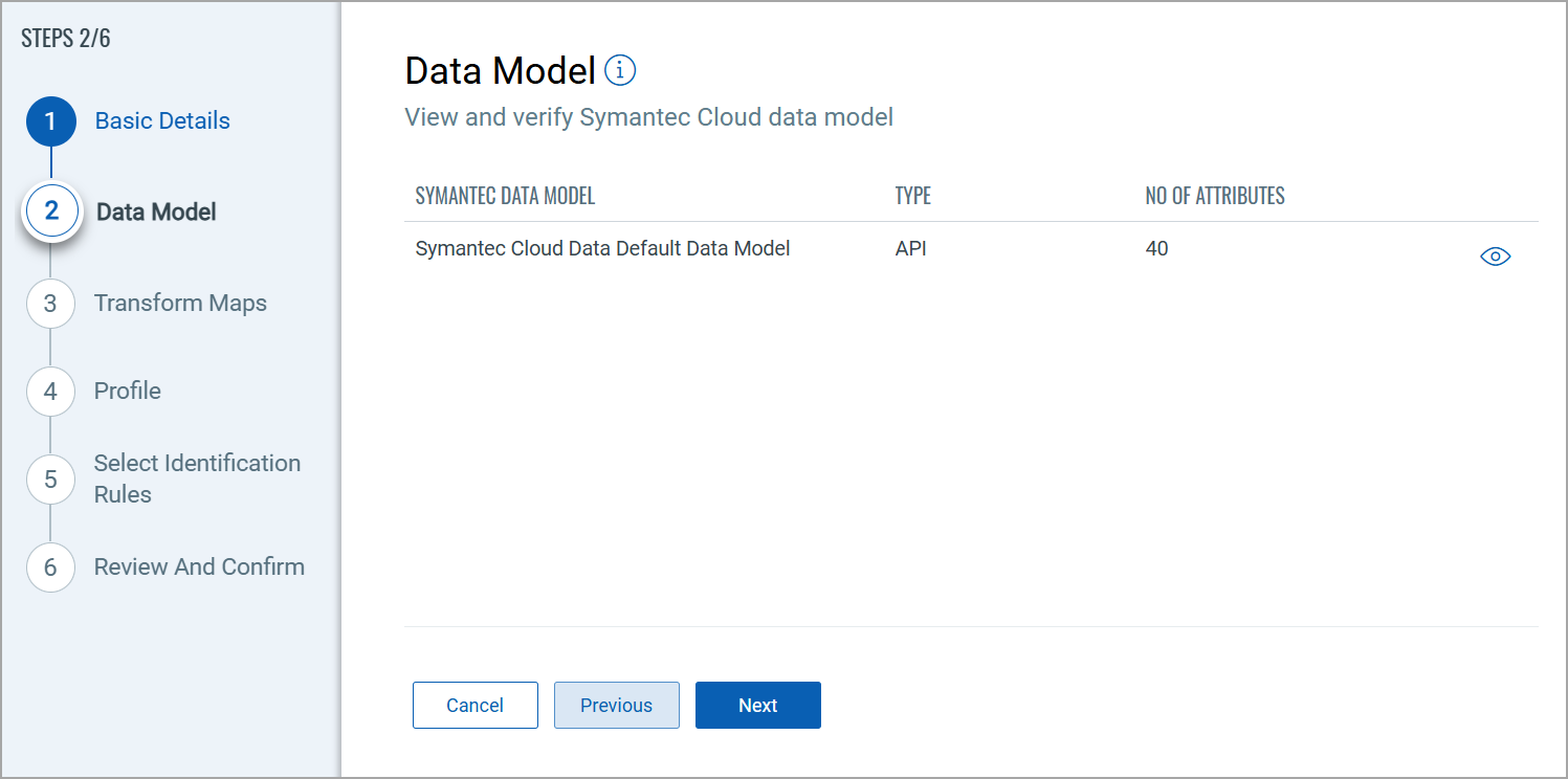 The Symantec Connector offers an out-of-the-box data model mapping for mapping with Qualys ETM schema. You can view the schema to understand the attributes in the data model.