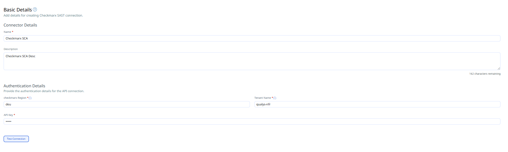 - Authentication details (Checkmarx region, Tenant Name, API Key)