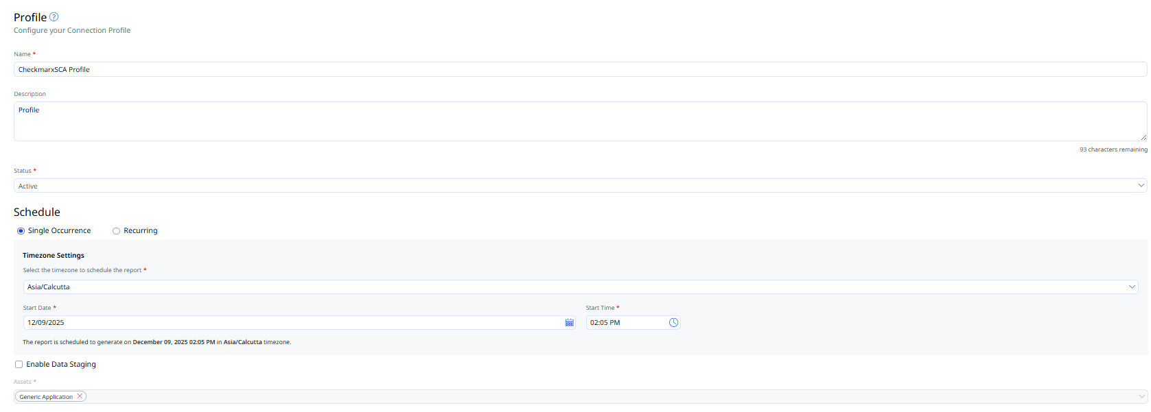 - Assets value will be Generic Application by default for the Checkmarx SCA connector