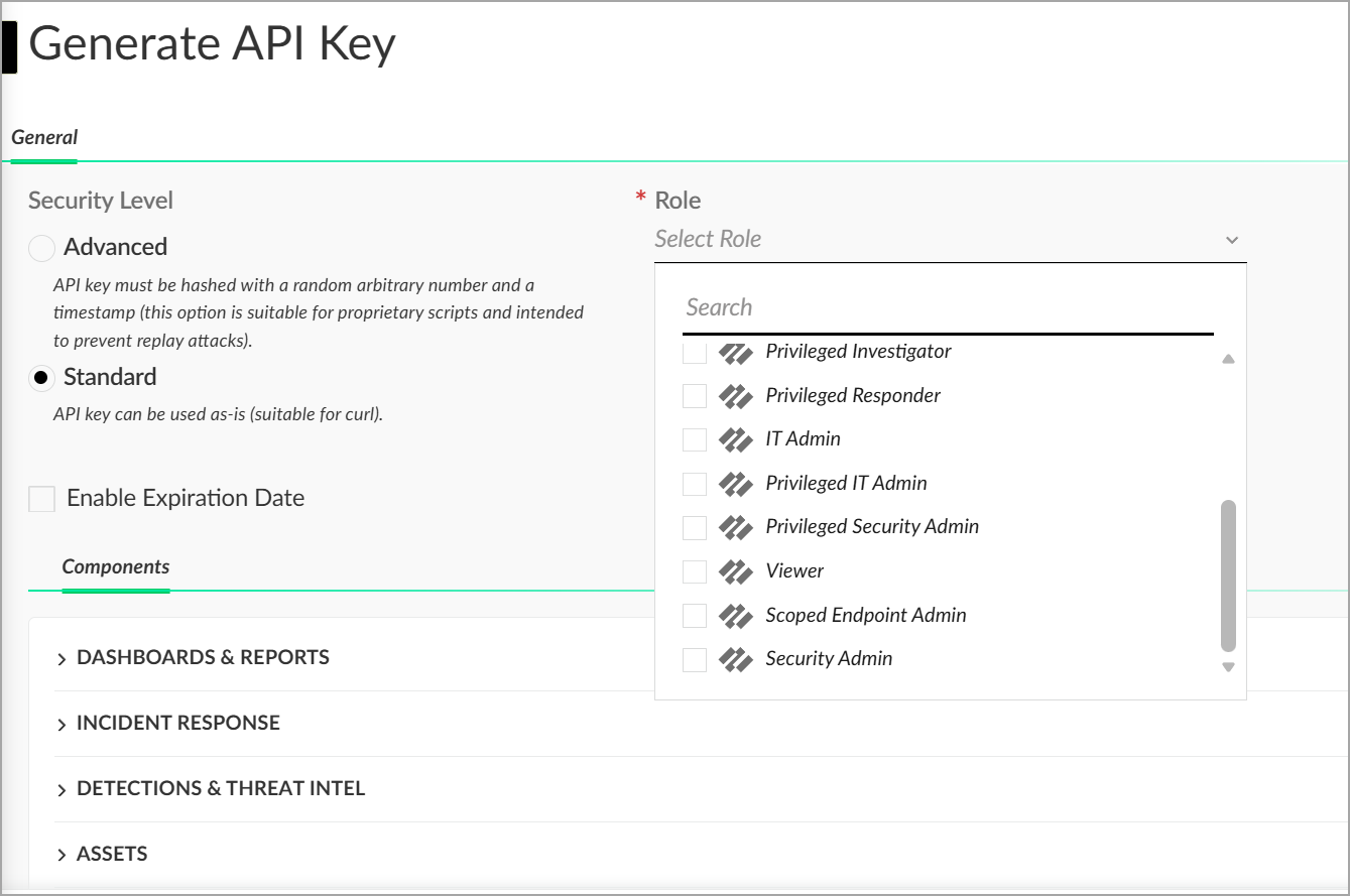 Refer to the Cortex XDR API documentation to learn more about creating the API Keys. Make sure the API key is assigned the Viewer role with Standard security level.