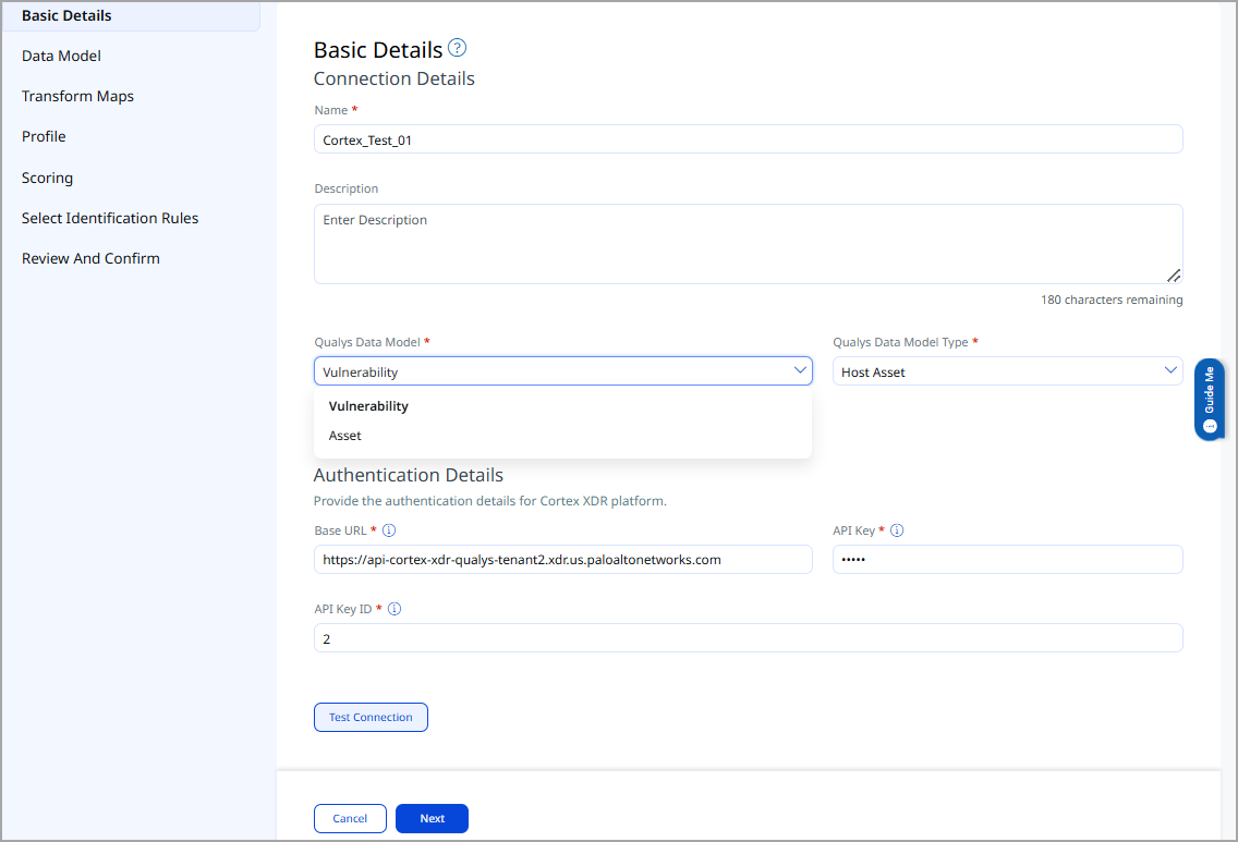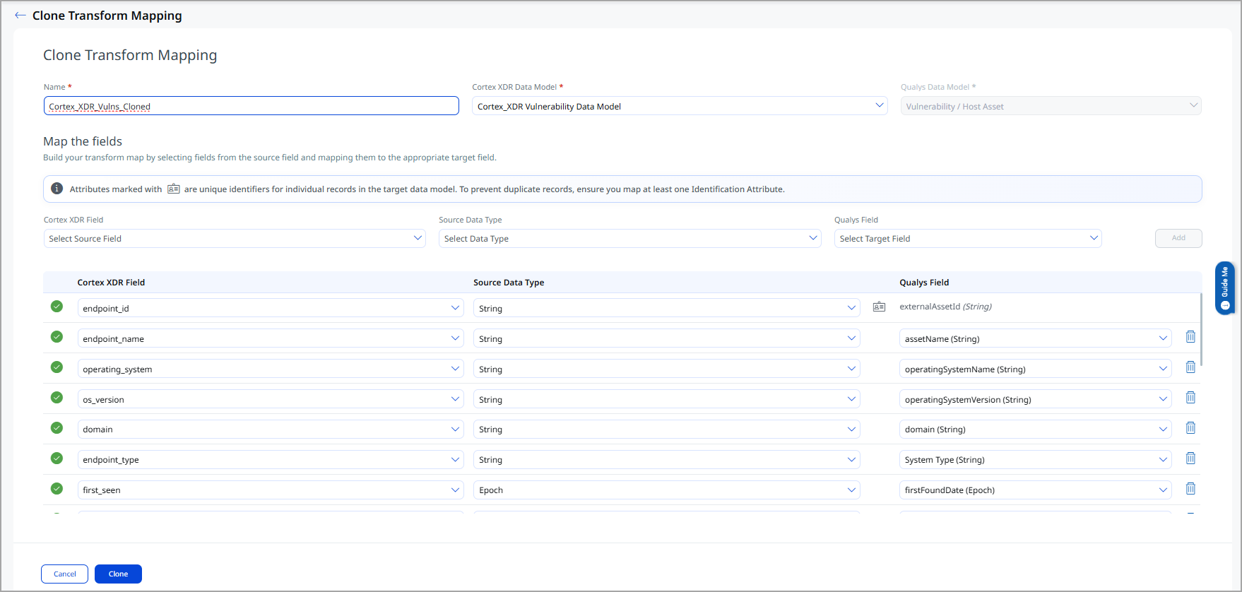 The Cortex XDR connector provides an out-of-the-box data model mapping aligned with the Qualys ETM schema. You can review the schema within ETM to understand all supported attributes.