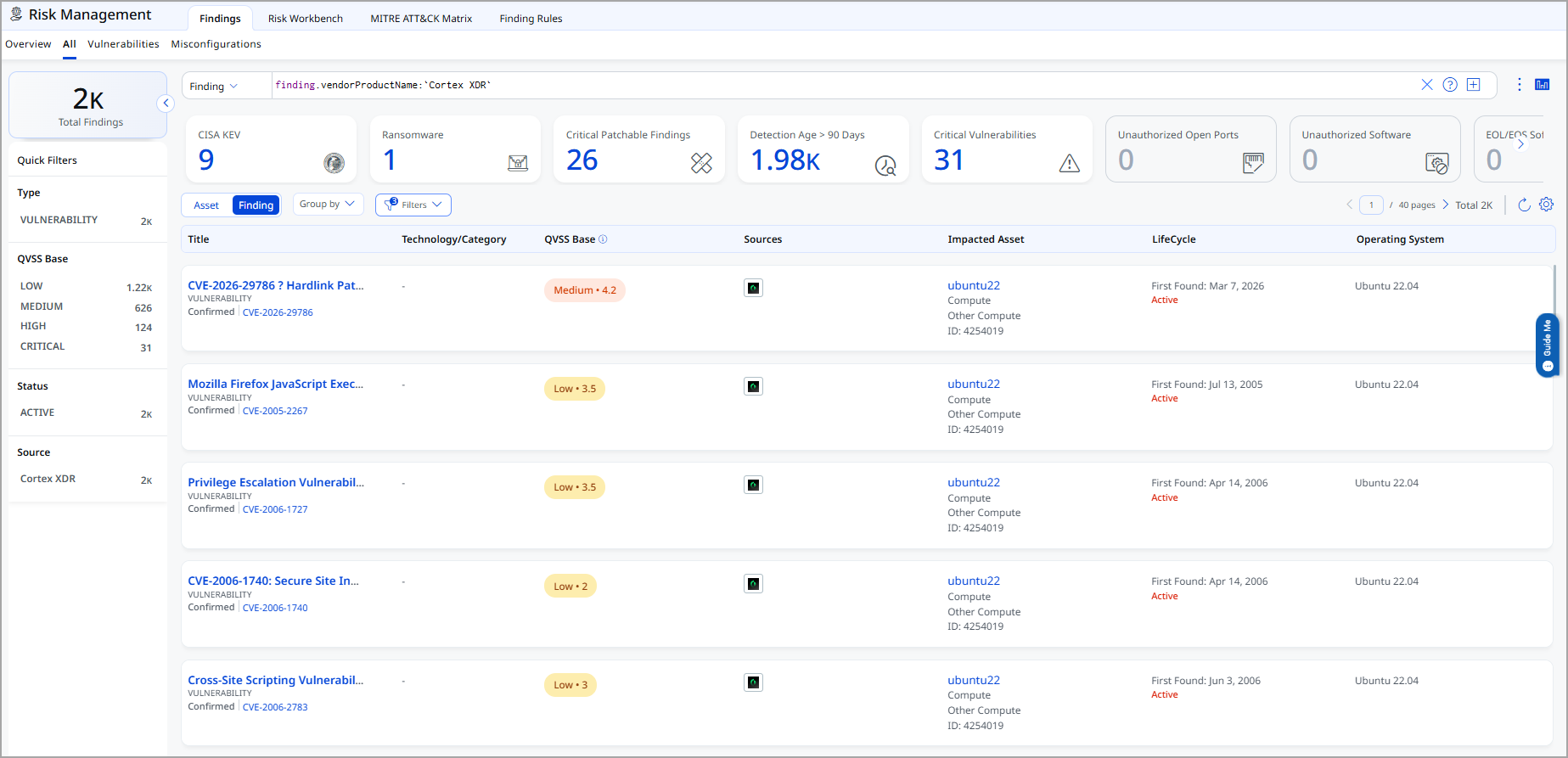 - Findings: Navigate to Risk Management and use:
