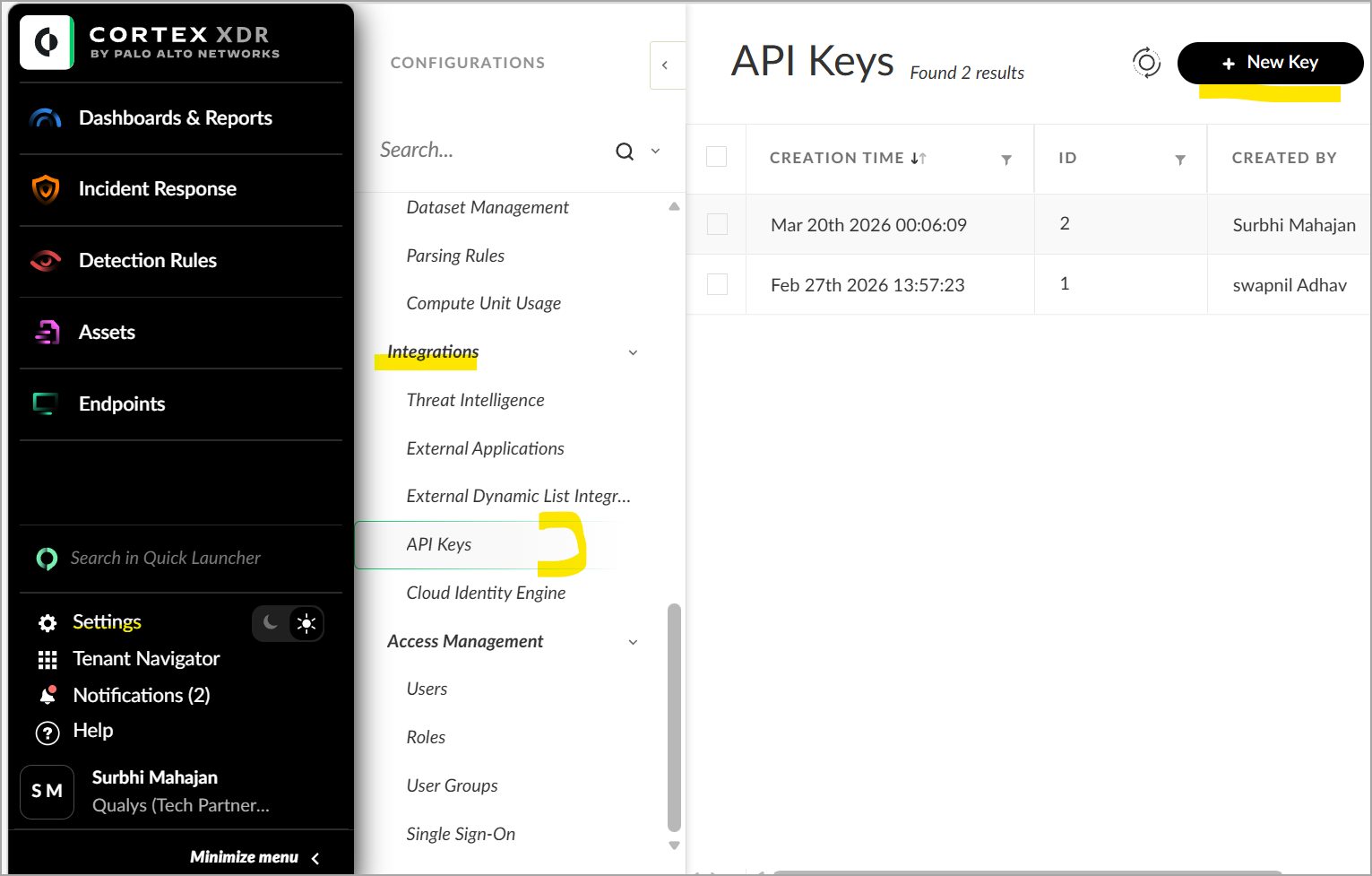 - Navigate to Settings > Configurations > Integrations > API Keys.