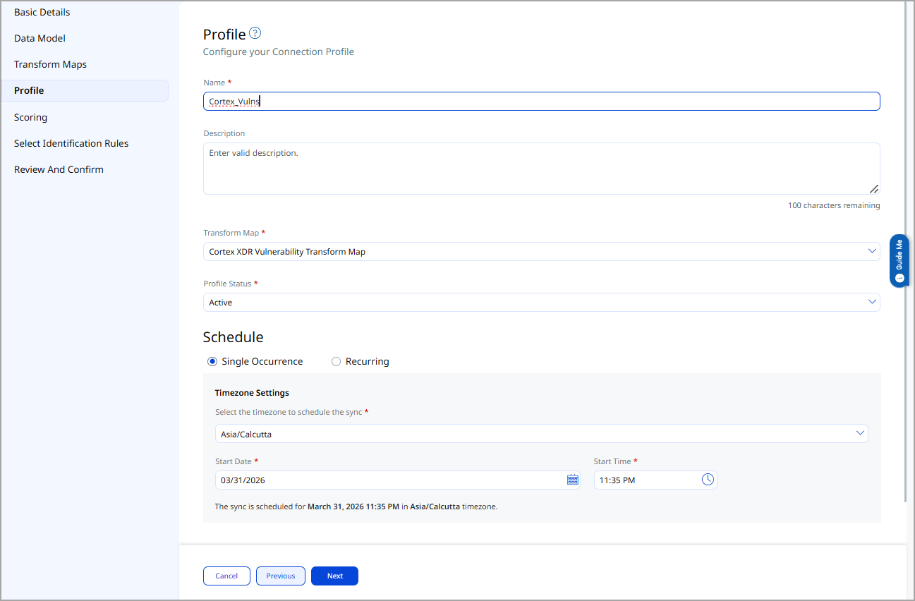 The Cortex XDR connector operates using configured profiles that determine what data is imported and when. Based on the defined schedule or manual execution, the connector pulls vulnerability and asset data from Cortex XDR into ETM.