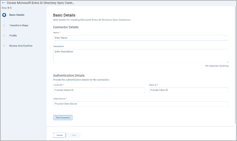 - Enter the authentication credentials: Tenant ID, Client ID, and Client Secret.
