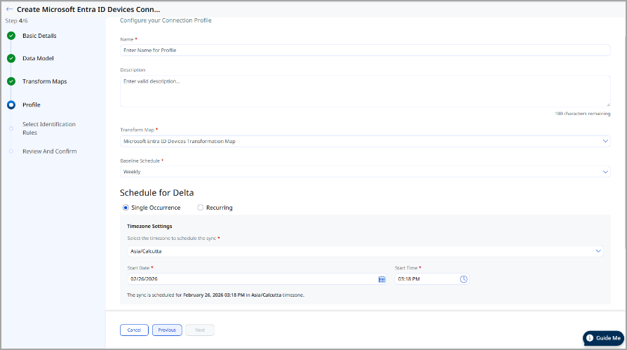 - Select a Baseline Schedule - applicable for recurring schedules. This defines how frequently a full snapshot is taken. For example, if the baseline is set to Weekly, the connector fetches a full snapshot on the first run, then fetches only delta changes until the week ends, after which a full snapshot is taken again.