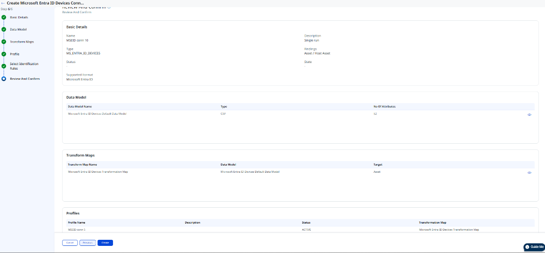Review all configuration settings on the Review and Confirm screen, then click Create to finalize the connector.