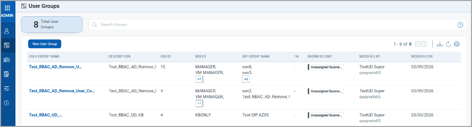 - User Groups: Go to AdminUI > User Groups. Filter or search by group name to locate specific Entra ID groups.