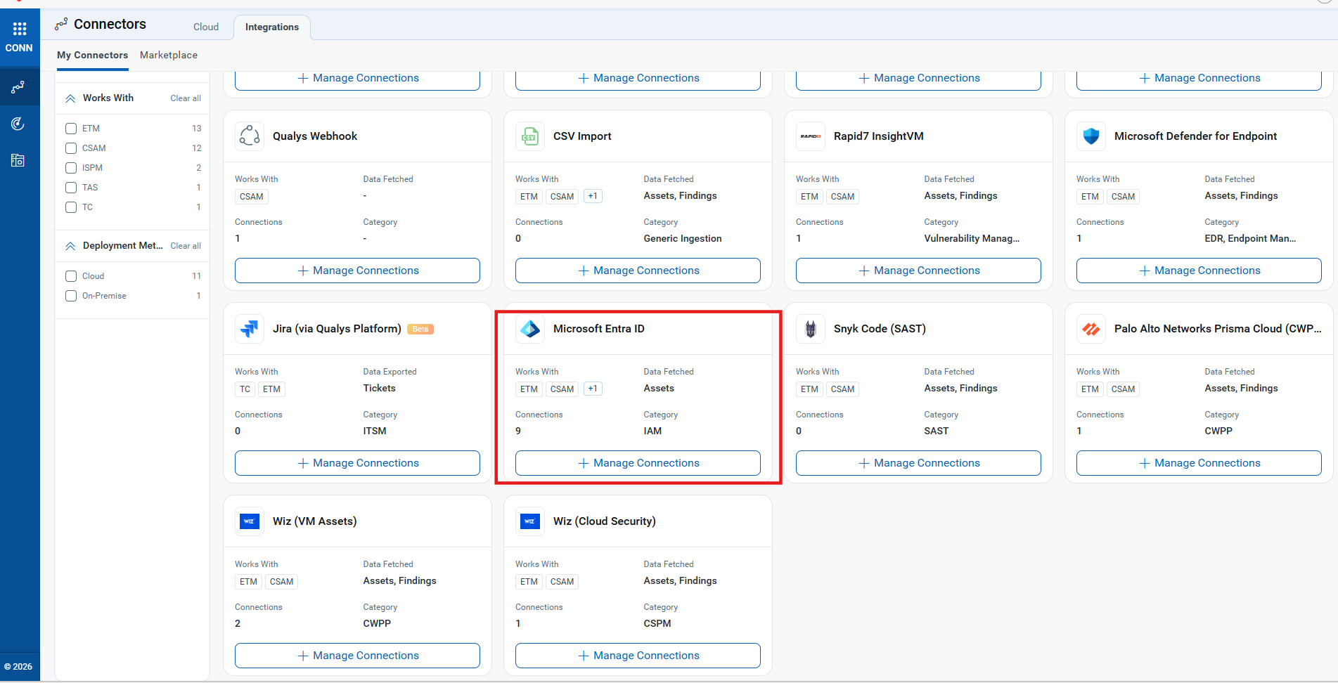 The Microsoft Entra ID Connector integrates identity data from Microsoft's cloud directory into Qualys CSAM/ETM Identity, enabling security teams to maintain a centralized inventory of users, groups, and roles across their organization. By synchronizing identity assets into the Unified Asset Inventory, security practitioners gain visibility into who has access to what resources and can correlate identity information with other security asset data. The connector supports delta pulls for efficient updates after the initial full synchronization, reducing the overhead of continuous identity reconciliation. This unified view helps security teams identify access control risks, enforce principle of least privilege, and respond more effectively to identity-related threats in hybrid and cloud-native environments.