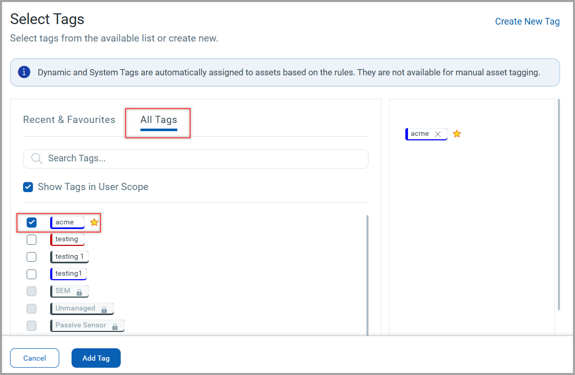 - In Select Tags window, click Create New Tag.