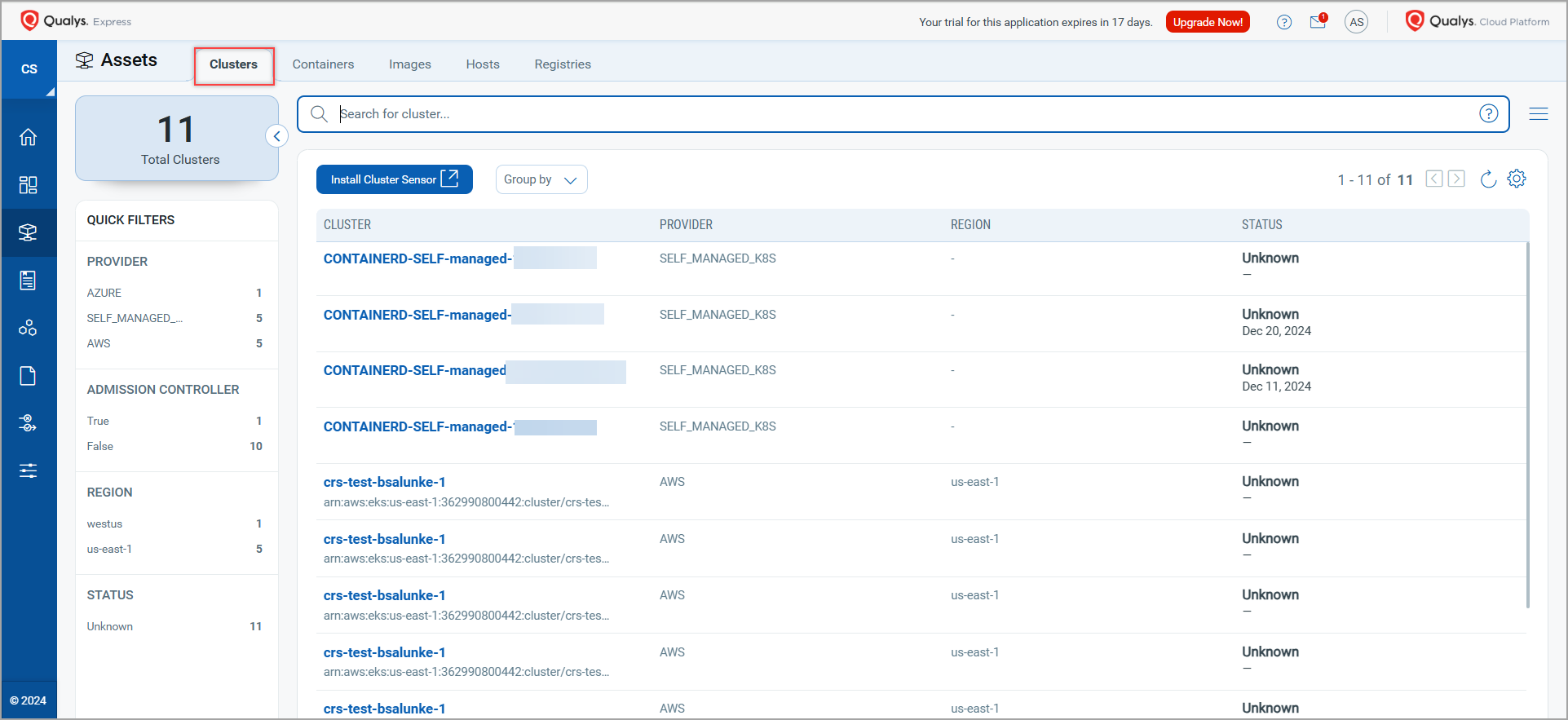 Currently, container hosts discovered, scanned only by the Qualys Container Sensor are not shown in this list. It is recommended you use the Images or Containers tabs for these. Additionally, Qualys Container sensors currently only support hosts and clusters with Linux-based host OSes and Mac OS.