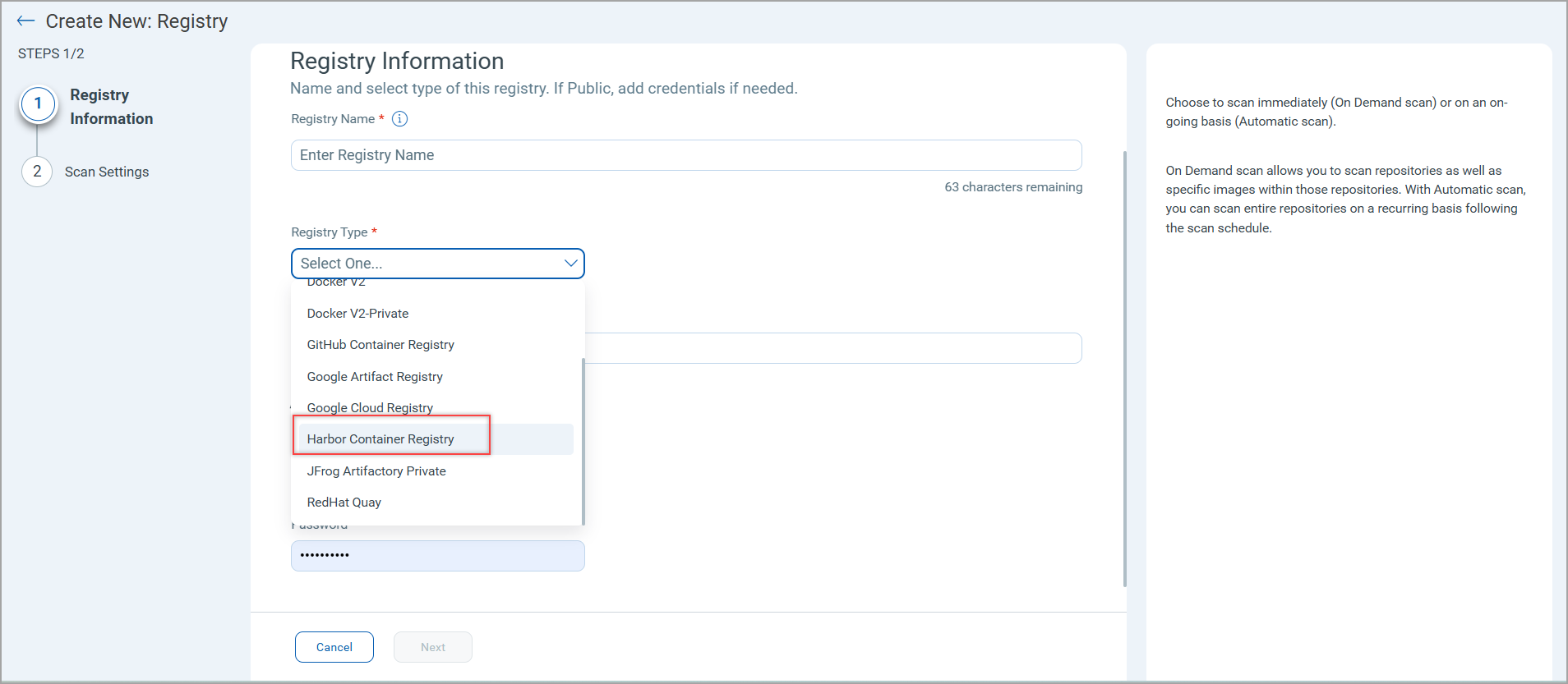 - Registry Type: Choose registry type - Harbor Container Registry.