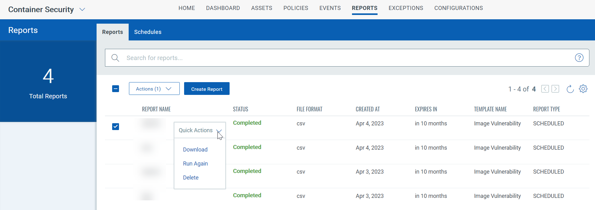 Manage Reports in Container Security