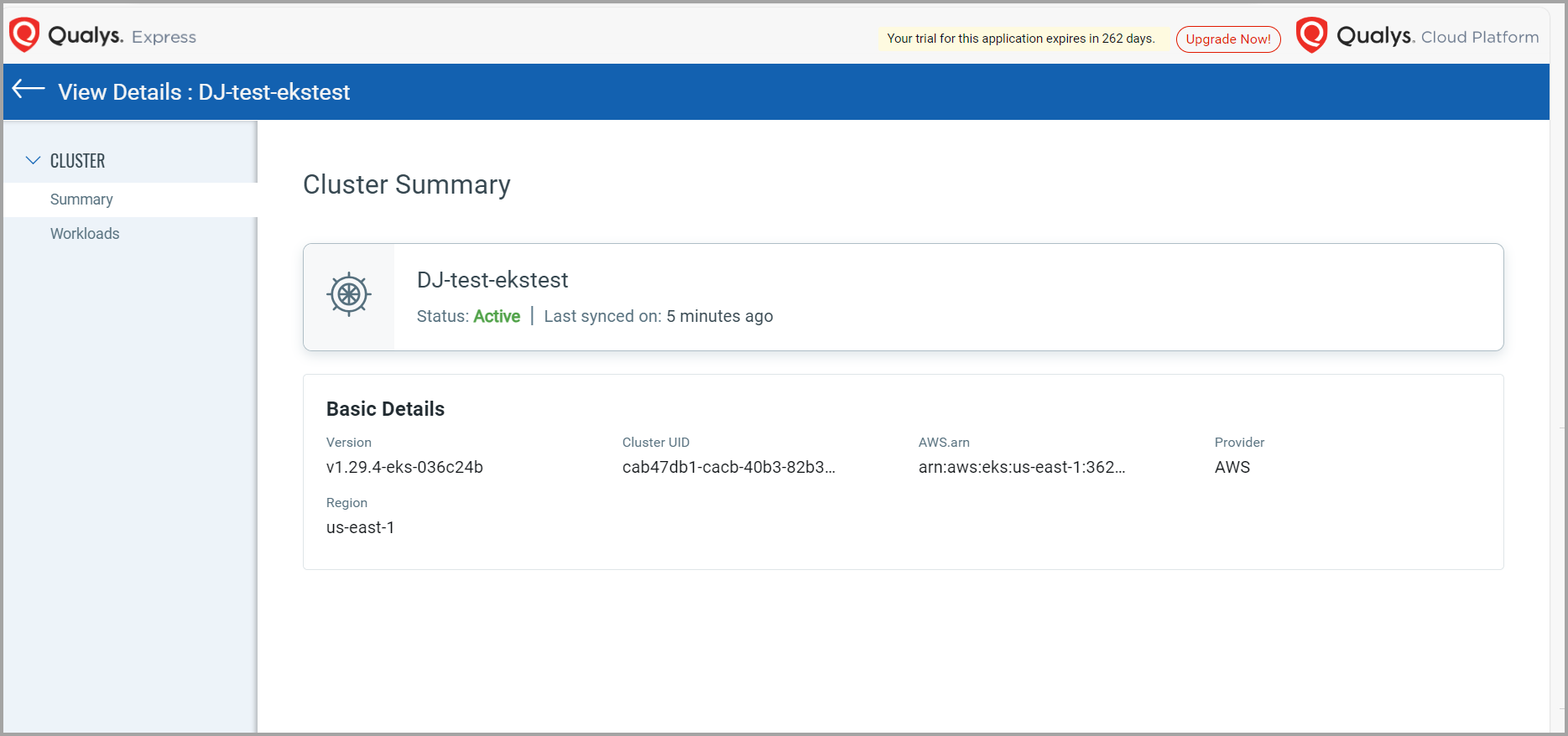 The Cluster Summary page provides basic details of your clusters such as, Status, Cluster UID, name of the cloud provider, and so on.