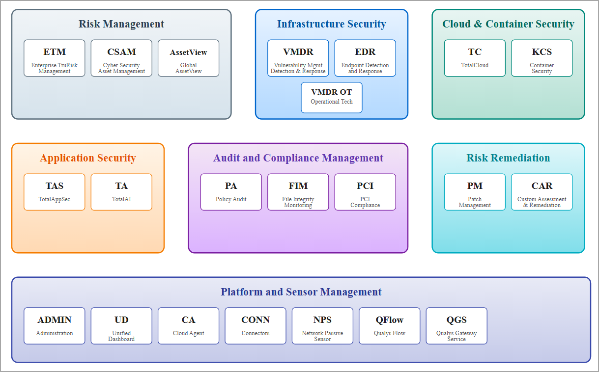 Use this section to explore specialized vocabulary and gain a deeper understanding of how each Qualys solution, such as VMDR, Cloud Agent, EDR, CSAM, and others, extends and applies the foundational concepts introduced earlier.