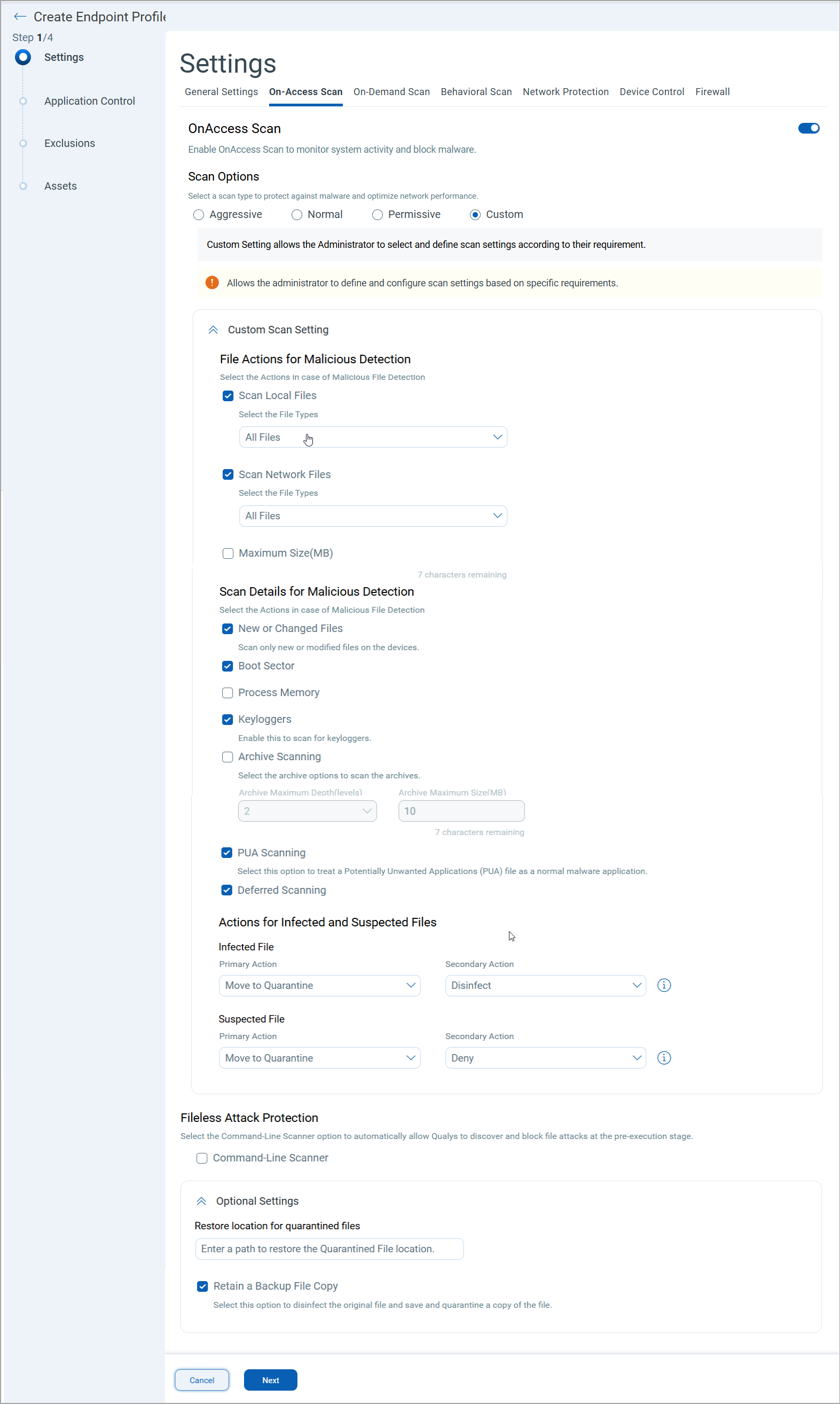 - File Actions for Malicious Detection - Select the actions to perform on files in case of malicious detection.