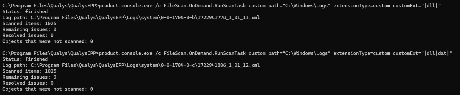 - If you set customExt to a specific list of extensions, Qualys Antimalware will scan only files with those extensions. You can tailor the scan to include only the critical or risky files.