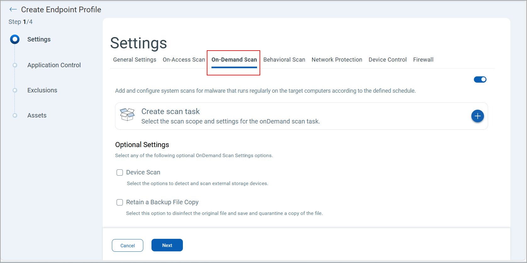 | OnDemand Scan | This toggle activates scanning initiated manually or according to a defined schedule. |