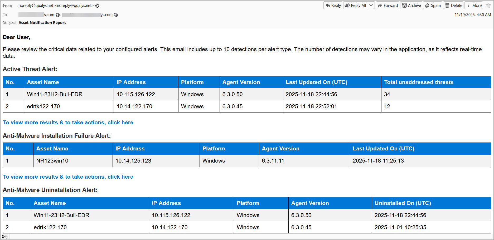 Active Threat Alert Email Notifications