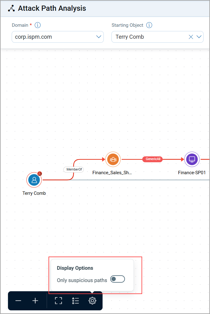 In environments with complex graphs, you can toggle between viewing all attack paths or only suspicious paths:
