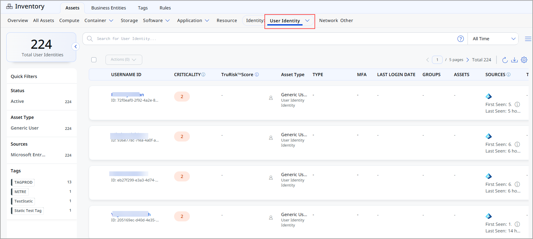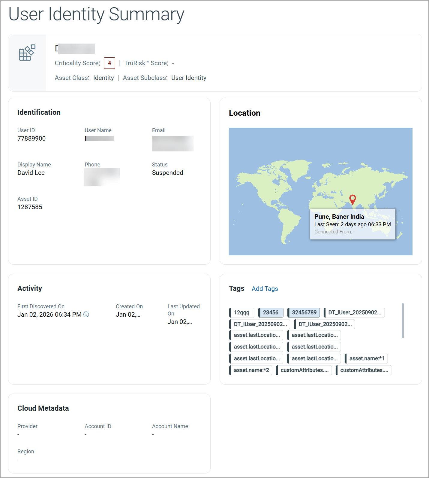 | TruRisk™ Score | Risk score calculated based on identity exposure, behavior, and associated risk factors. |